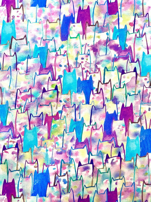 Robert KaufmanPacked cat silhouettes in purple and blue watercolor tones. Meow! Whisker Wonderland by Subhashini Narayanan for Robert Kaufman Fabrics is full of ...