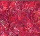 Pink, red and purple tonal batik with pink and yellow flower designs. Hoffman Bali Batik Handpaints offer a large amount of batiks in hundreds of different colors and patterns.