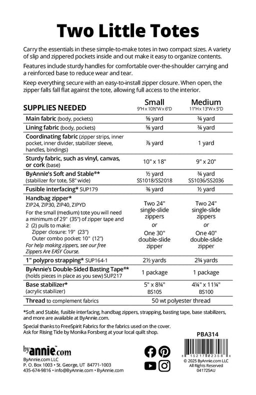 byAnnieCarry the essentials with Two Little Totes! This versatile pattern includes instructions for creating simple-to-make totes in two compact sizes. Th...