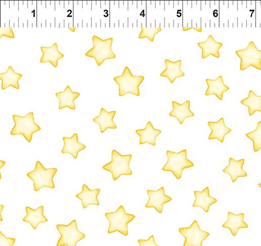 In the Beginning FabricsGold stars on a white background. Dragon Friends by In the Beginning Fabrics is bursting with kid-friendly colors, playful dragons, and whimsical f...