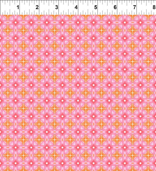 In the Beginning FabricsPink and gold geometric shapes. Dragon Friends by In the Beginning Fabrics is bursting with kid-friendly colors, playful dragons, and whimsical fan...