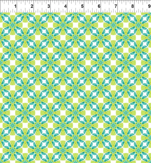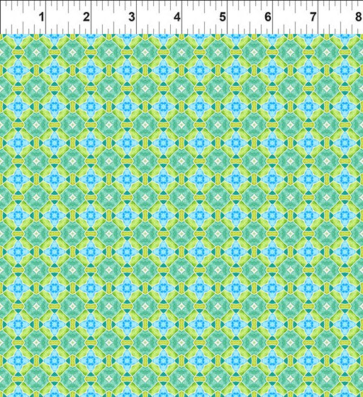 In the Beginning FabricsGreen and teal geometric shapes. Dragon Friends by In the Beginning Fabrics is bursting with kid-friendly colors, playful dragons, and whimsical fa...