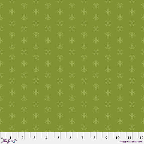 Free Spirit FabricsPea green background with lighter shaded flower circles. Chromatics is designed to inspire with a beautiful range of color. These spirited prints w...