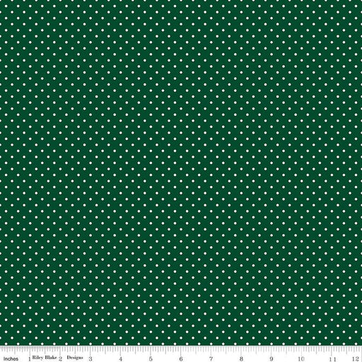 Riley Blake DesignsThis Riley Blake Designs Basic fabric features small white polka dots on a green background every 1/2" along the fabric.100% Cotton 44" Wide Colors...