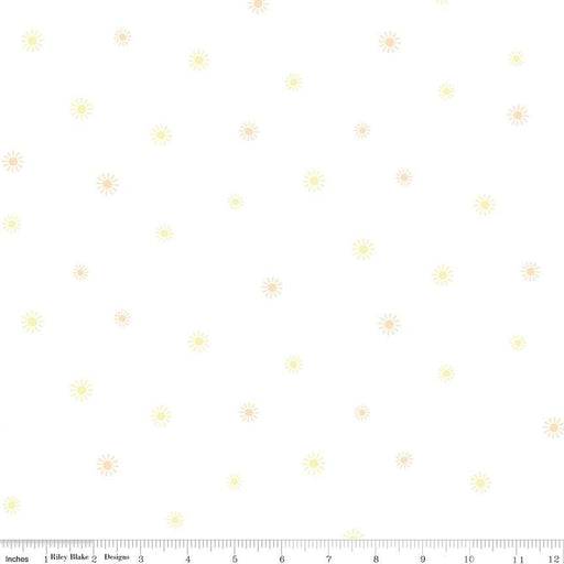 Riley Blake DesignsHush Hush 5 by Riley Blake Designs is great for low volume quilting, apparel and home decor. This print features scattered suns on a white backgrou...