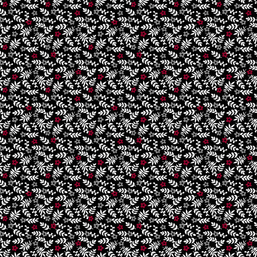 ClothworksBlack background with small gray and red flowers, all with white leafy stems. Merlot by Clothworks designer Teresa Magnusen shows off the elegance ...