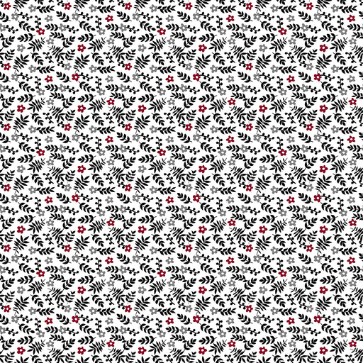 ClothworksWhite background with small gray and red flowers, all with black leafy stems. Merlot by Clothworks designer Teresa Magnusen shows off the elegance ...