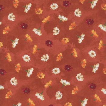 Wilmington PrintsRust background with scattered flowers. Wilmington Prints' line Harvest Blooms is autumn-centered and perfect for cool-weather projects in beautifu...