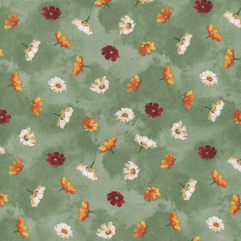 Wilmington PrintsGreen background with scattered flowers. Wilmington Prints' line Harvest Blooms is autumn-centered and perfect for cool-weather projects in beautif...