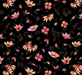 Black background with orange and pink flowers. Wilmington Prints and Lola Molina present Botanical Magic, a line of mystical colors, butterflies and plants, plus more than a hint of magic.