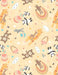 Colors in this fabric: Yellow, Pink, Brown, Gold, White, Black, Blue, Teal, Taupe