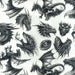 Cream background with dark gray and black sketched dragon eyes, heads and faces. In Dragons – Emerald Reign, a new collection for In the Beginning Fabrics, Jason Yenter paints a legend in cloth, where emerald skies blaze with winged fire and myth whispers through every thread. Colors burn like enchanted jewels—amber flame, shadowed sapphire, and glistening jade—each hue a spellbinding note in a dragon’s song. This is not just fabric; it is fantasy given form, ready to wrap the dreamer in magic.