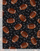 Black background with footballs and play markings. Fitness Fanatic by Timeless Treasures is a great line with lots of different sports represented.