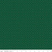 This Riley Blake Designs Basic fabric features small white polka dots on a green background every 1/2" along the fabric.